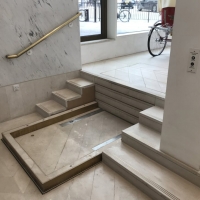 The Thames Retracting Stair Lift has horizontally retracting stairs and employs our low profile lift technology. The upper landing can either have no barrier (for lifts with a rise less than 500mm), or a manual/automatic gate.