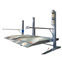 Two post parking lift PJS201 have two levels,you can used it to parking 2 cars. Lower cars can be parked or taken at will, if we want to park or take the upper cars, we have to take the lower cars first.